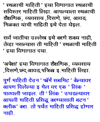 2. It is not possible to include all the casts in the drop-down box given in the form, if you do not find a particular name listed, you may include it in "Personal Info" Section. 3. Please fill in your expectations about the education, profession, hobbies, if you want to see a horoscope etc in the "Expectations" section. |